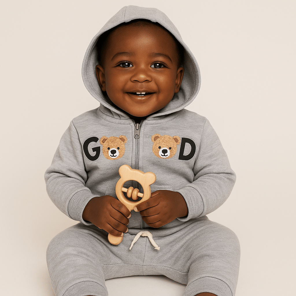 Ensemble bébé à capuche – gris ourson – 3–24 mois