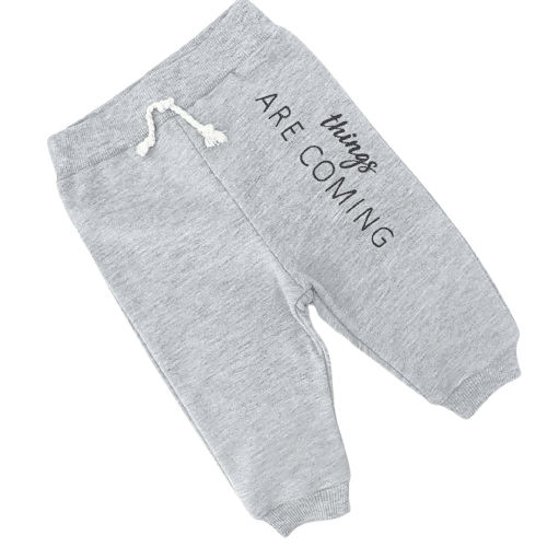 Motif : ourson sur la veste, texte Good things are coming sur le pantalon