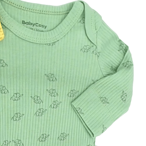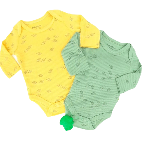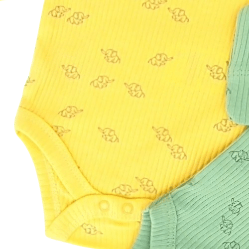 Duo éléphants – lot 2 bodies bébé manches longues, citron et vert – 0-24 mois